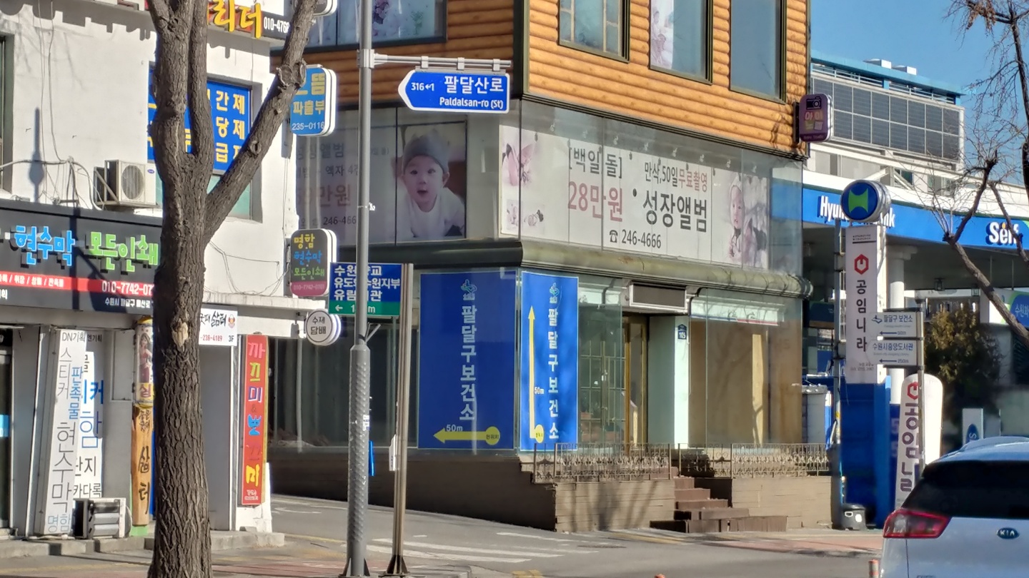 멀리에 팔달구 보건소 이정표가 보입니다.