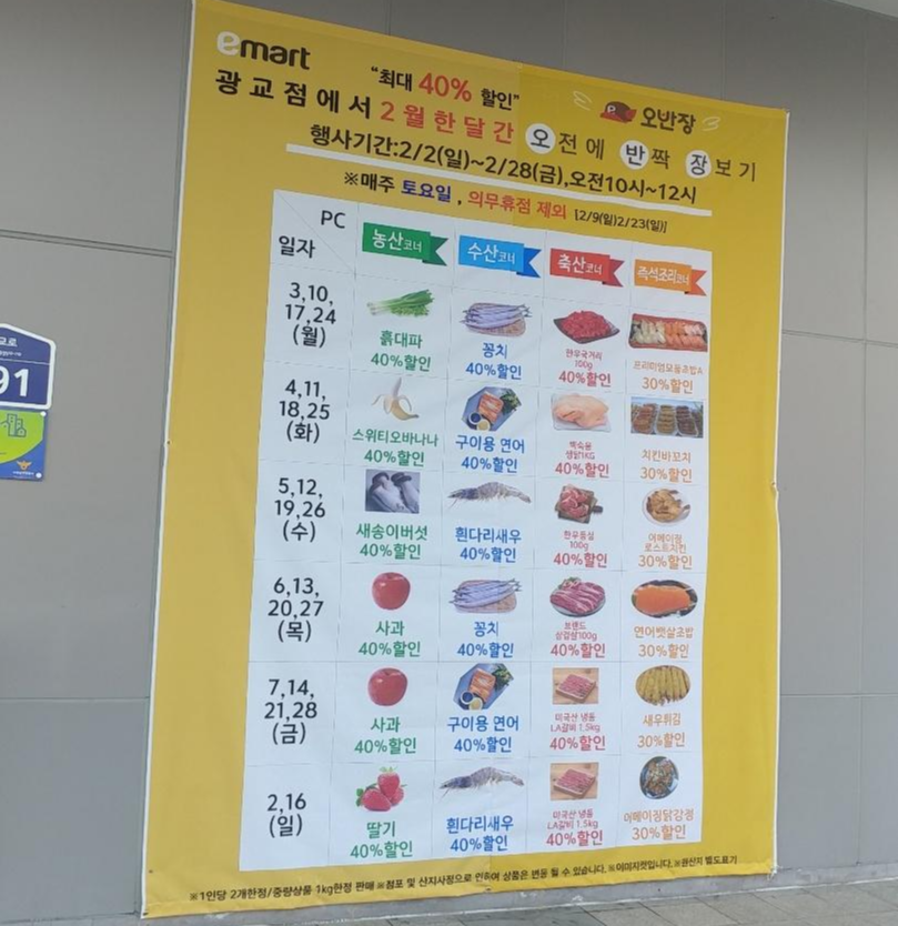 - 이마트 광교점 2월 오전에 반짝 장보기 할인 행사 품목 알려드립니다.