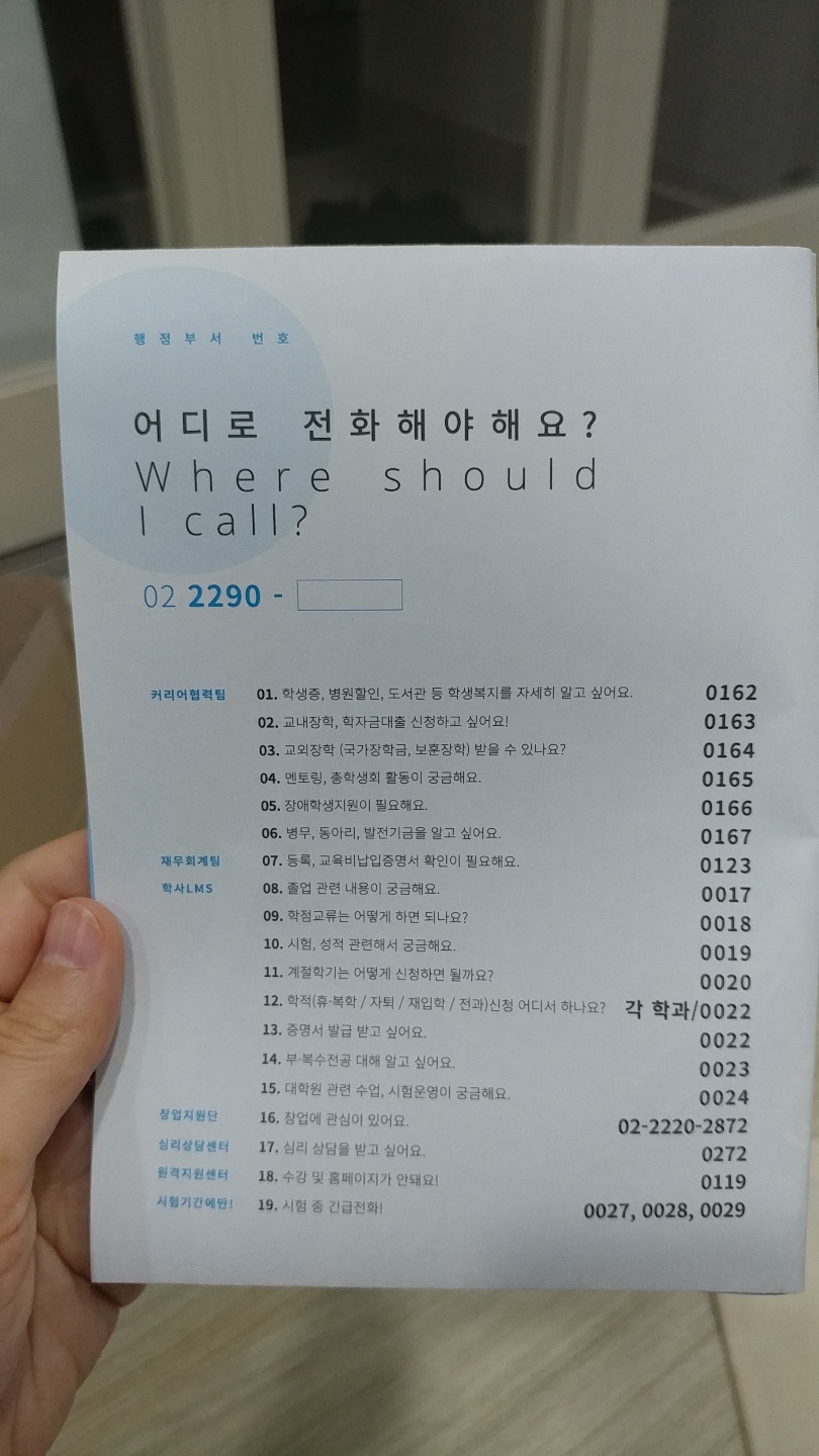 행정부서 전화번호도 적혀있고 한양대 캠퍼스 지도도 들어가 있다.