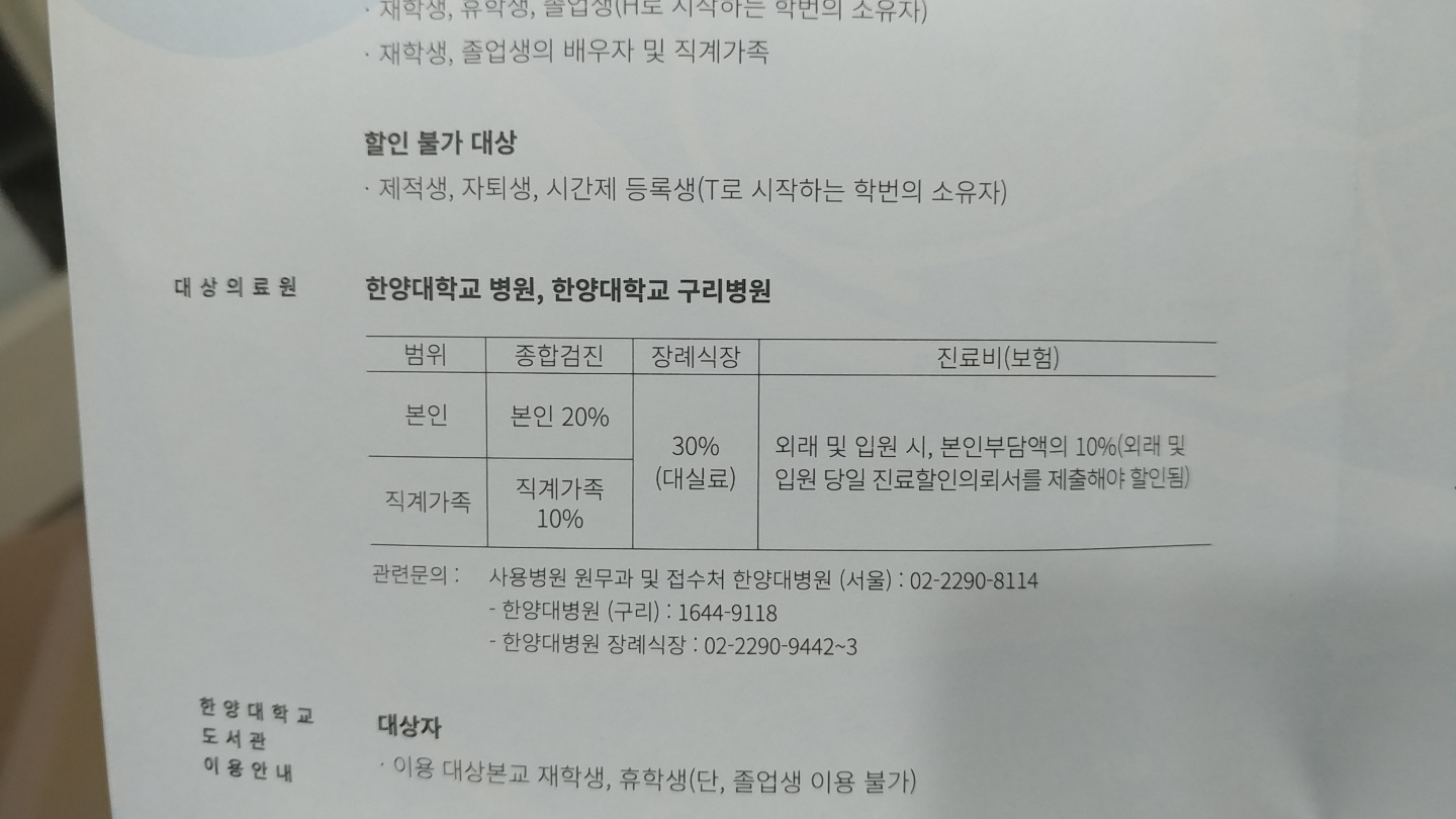 사이버대학생들도 한양대학교 병원 할인을 받을 수 있다.