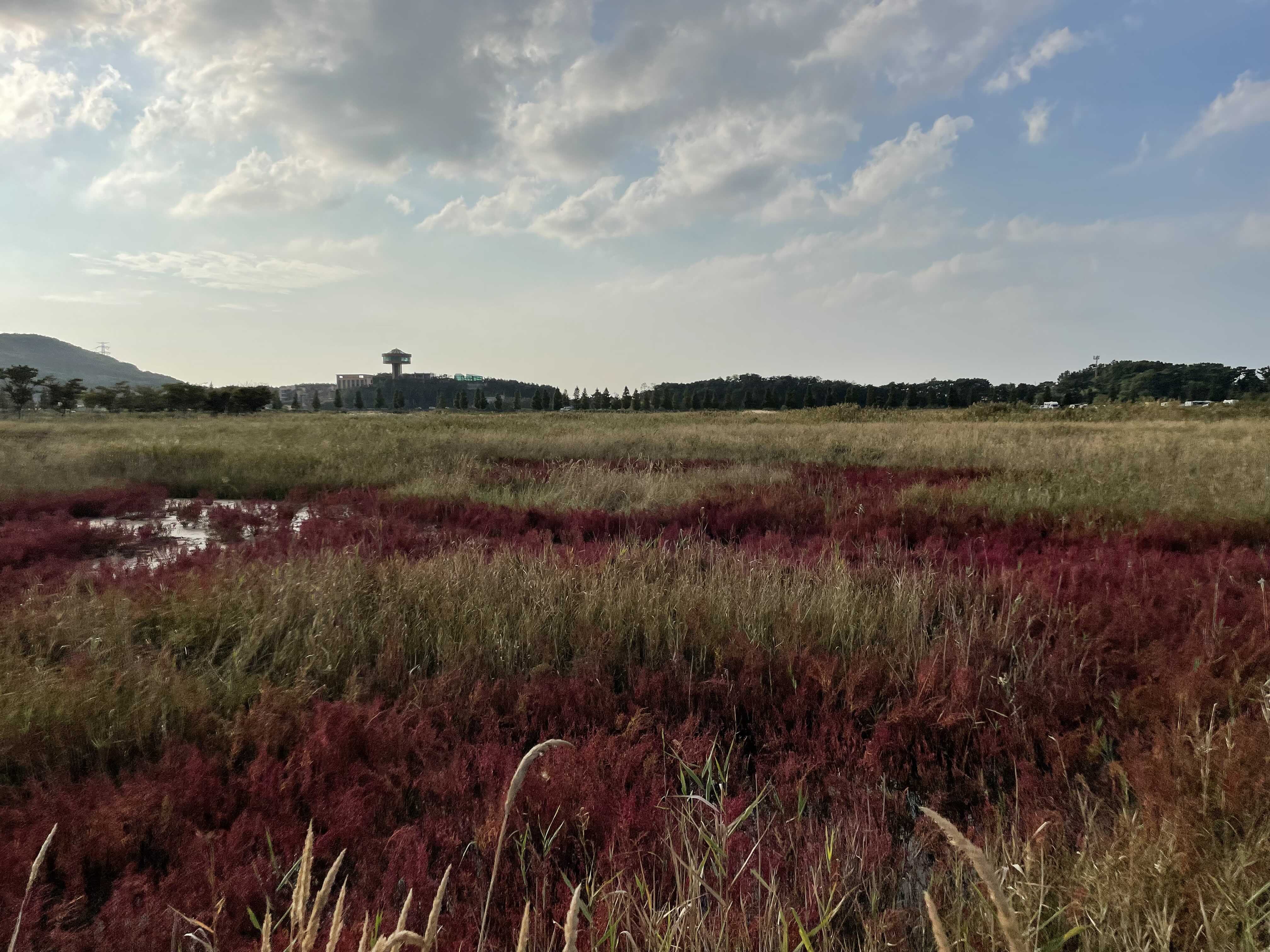 방아머리 해수욕장 주차장에서 출구로 나가는 길에 발견한 대부바다향기테마파크 이다. 나는 사실 뻘다방이나 방아머리 해수욕장보다 이곳이 정말 좋았다. 주말에도 사람이 많이 붐비지 않고, 한적하고 고요했기 때문이다. 넓은 평야에 갈대와 나무들은 마음에 안정을 주었다. 사람이 많은 곳에 가면 에너지가 많이 소진되기 때문에 마지막 코스였던 이곳에서 몸과 마음의 에너지를 다시 채울 수 있었다. 셀프 웨딩촬영 장소로도 나쁘지 않을 것 같은 느낌이 들었다.