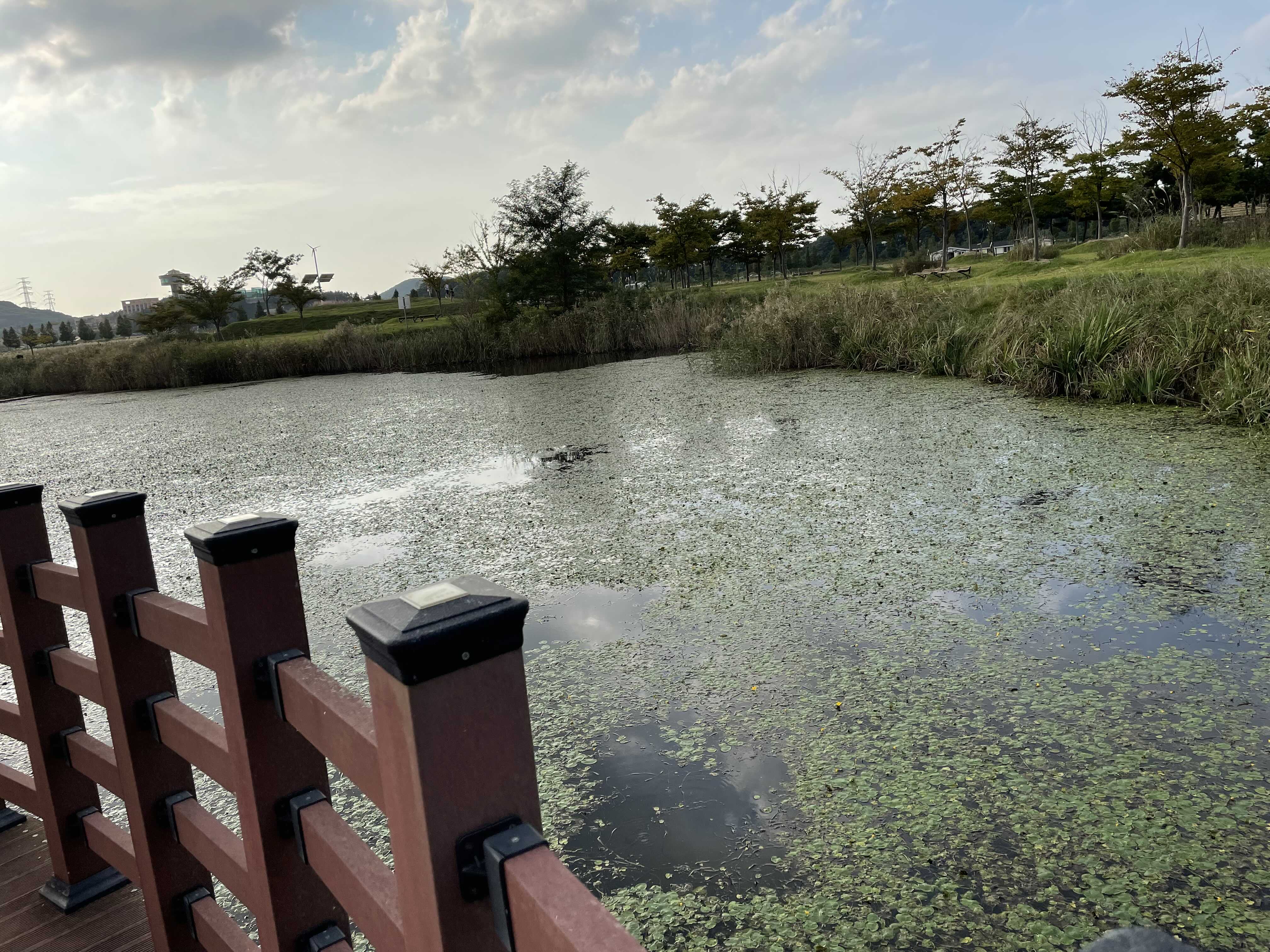 가운데에는 큰 연못이 있었는데, 물고기가 굉장히 많았고 부상 수초도 많이 있었다. 영상에서 특이한 소리는 물고기가 뭘 뜯어먹는 소리이다. 물고기가 수면의 풀들을 뜯어먹는 것 같은데, 처음 본 관경이었고, 생소한 소리여서 신기했다. 수초가 너무 다 뒤덮고 있어서 물상태가 좋을지 걱정이 되었다.