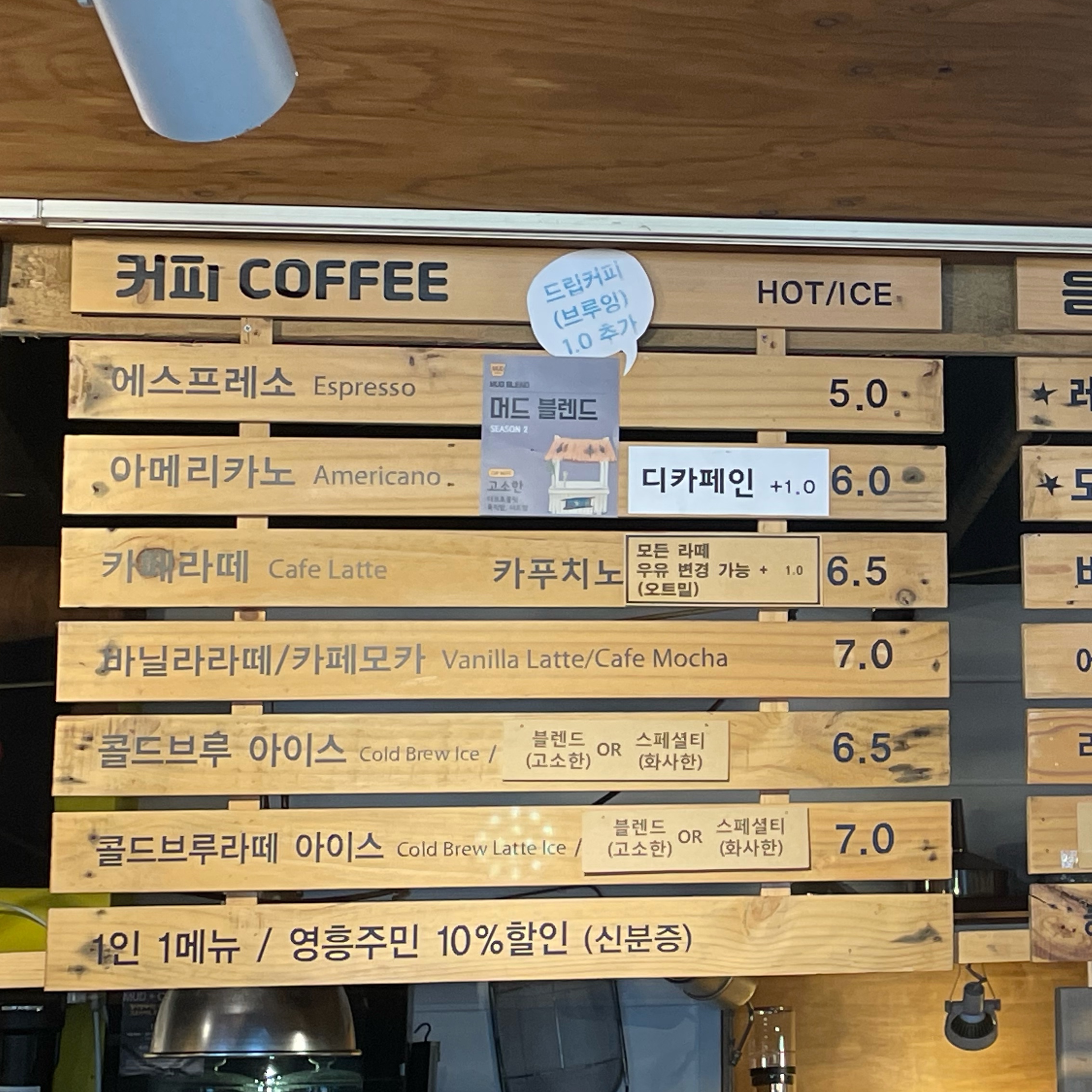 나는 레알망고랑 아이스 아메리카노를 시켰는데, 레알 망고는 맛있었다. 모히또도 인기가 좋다. 커피가 디카페인이 가능하기 때문에 커피를 못 마시는 사람들에게도 선택의 폭이 넓다. 우유를 오트밀로 변경도 가능하다. 스타벅스에서도 우유는 아직 두유로 밖에 변경이 안되는데, 오트밀로 우유 변경이 가능한 카페가 있다니 신기하고 반갑다. 우유를 좋아하지 않고 소화가 잘 안돼서 안 먹기 때문에 집에서도 매일유업 오트 밀크를 사서 미숫가루를 타 먹거나 단백질쉐이크 등을 타 먹을 때 주로 사용하는데 맛있다. 앞으로 가격이 더 저렴해졌으면 좋겠다.