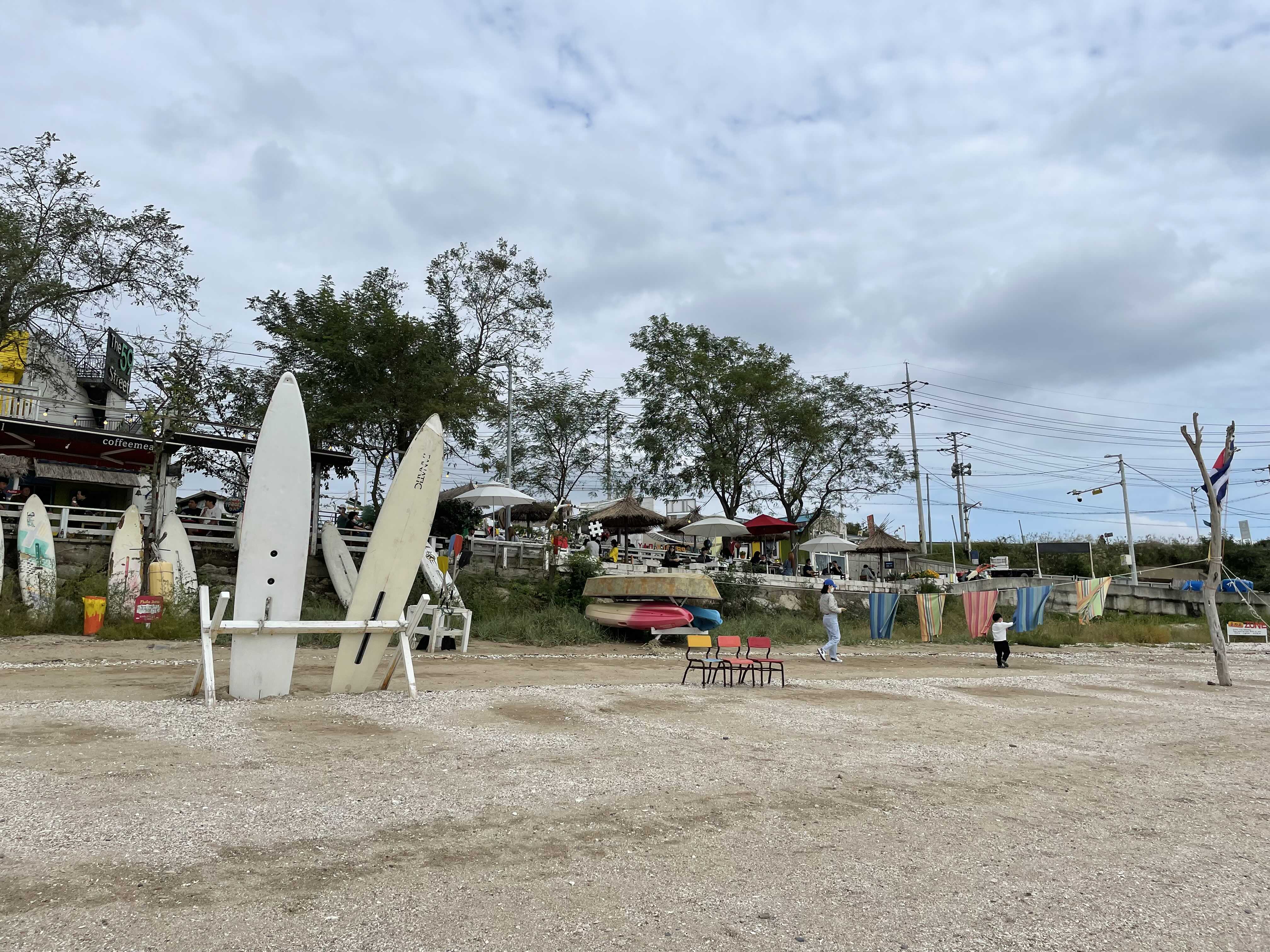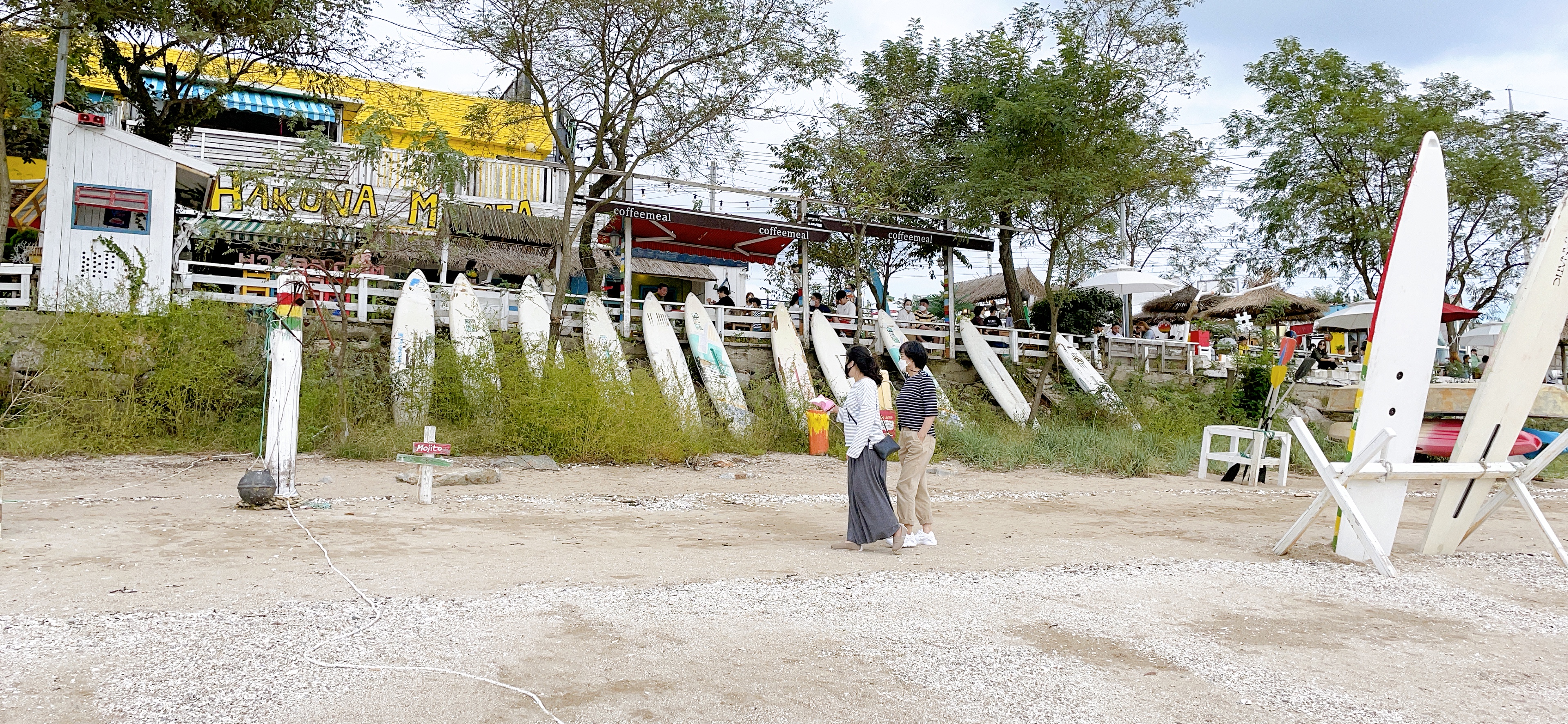 유목, 서핑보드, 의자, 그네, 천막 등으로 해변을 이국적이게 꾸며놨다. 포토존으로 사진을 촬영할 만한 곳들이 굉장히 많이 있다.