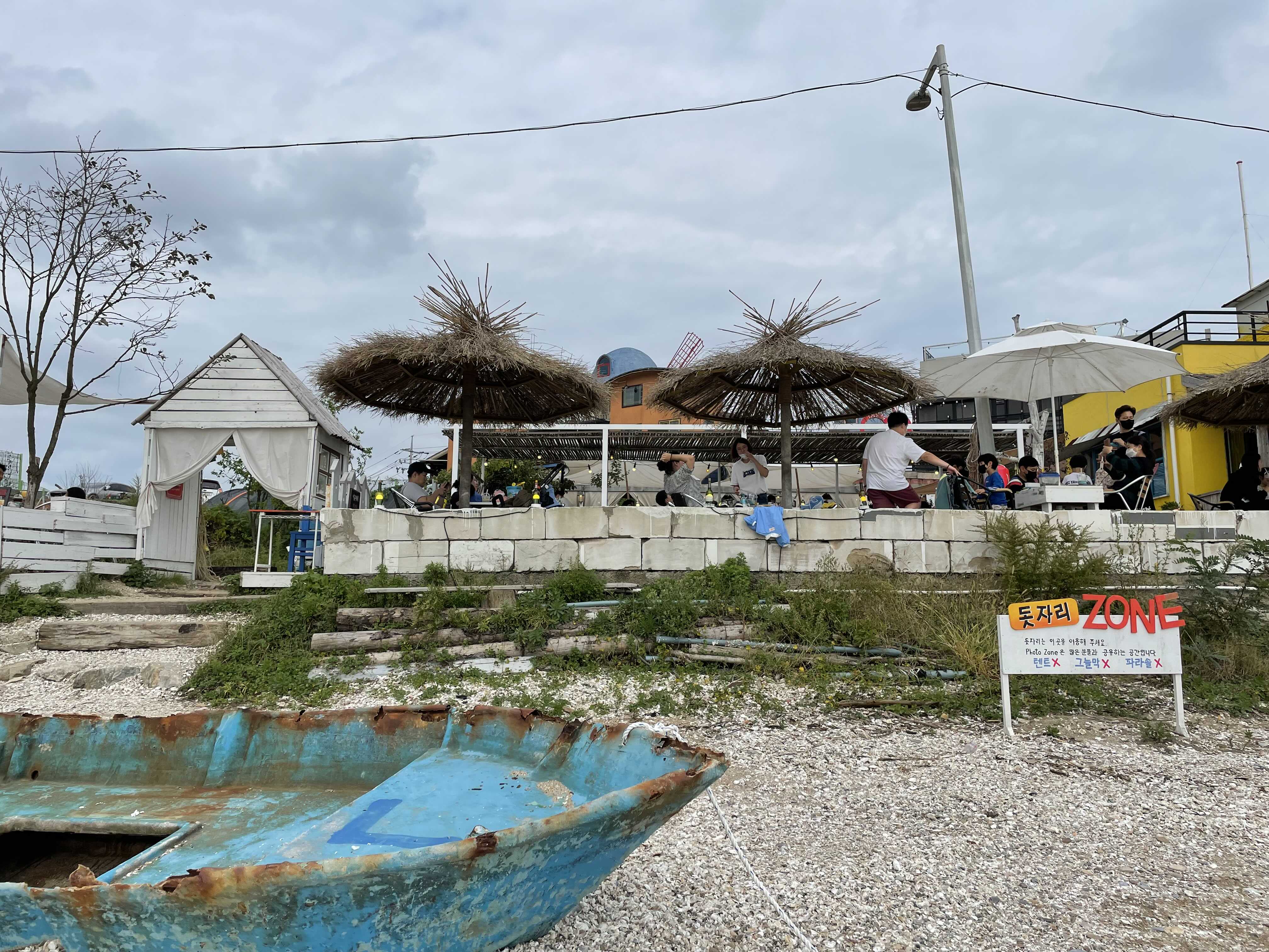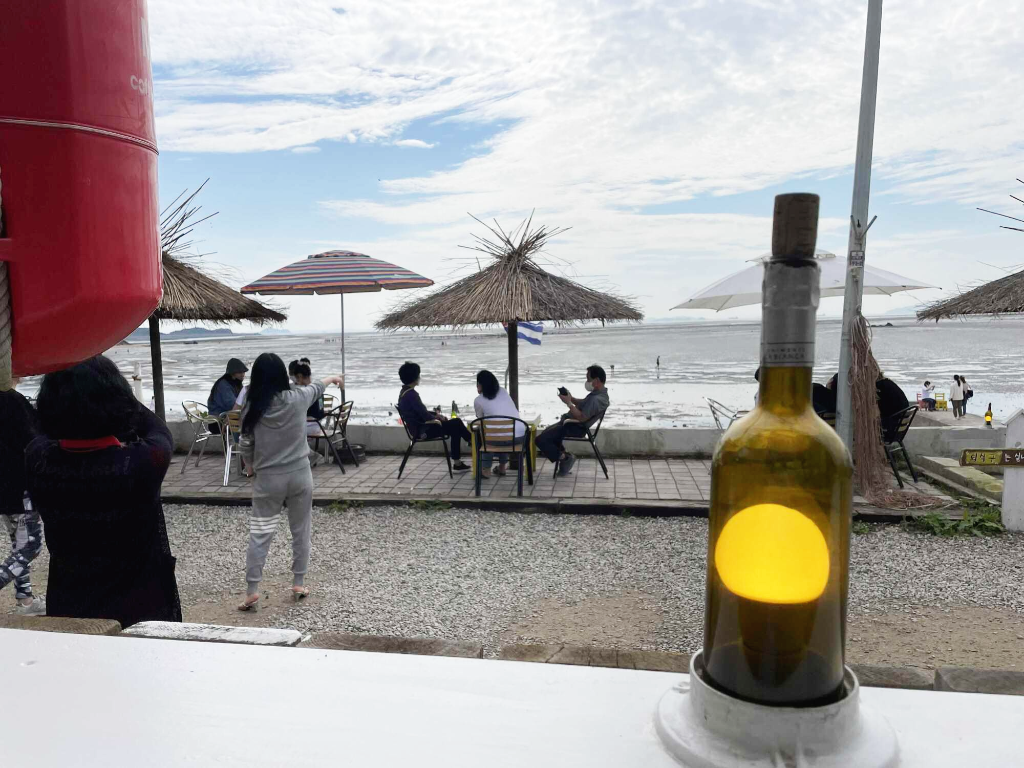 들어가자마자 이국적이면서도 휴양지 느낌의 인테리어와 소품들이 가득하다. 한국에서는 보기 힘든 인테리어이다. 또한 야외석이 굉장히 많이 있다. 날이 좋을 때 오면 탁 트인, 바다, 하늘을 온전히 느낄 수 있다. 아이들과 함께 오는 가족들이 굉장히 많았다. 카페에 자리를 잡고 바로 앞에서 갯벌 체험을 할 수 있어서 아이들이 노는 모습을 안전하게 지켜볼 수 있다.