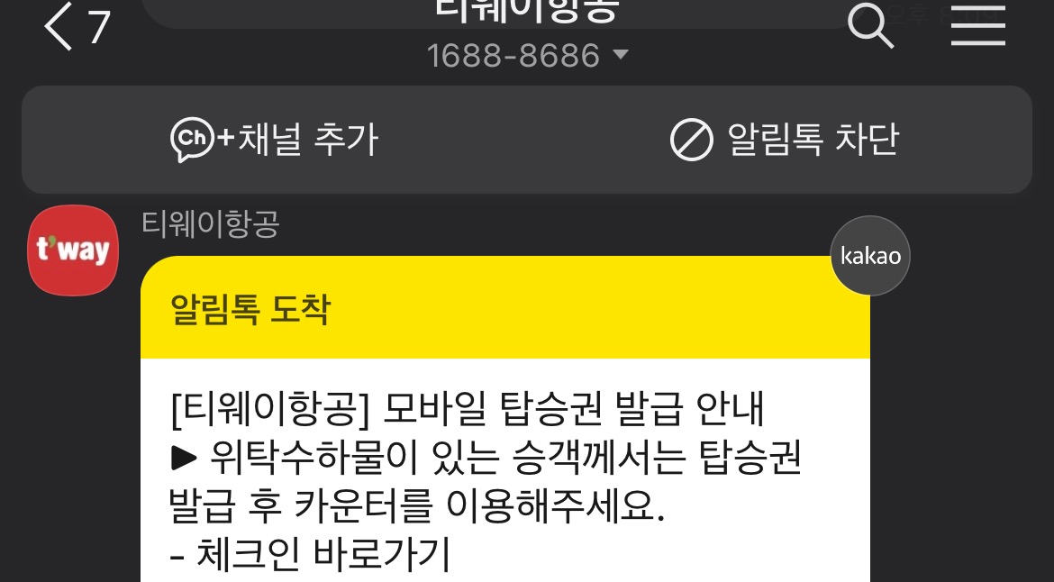 이렇게 모바일 체크인 하라고 연락이 온다. 모바일 체크인시 좌석 선택이 가능하니 사전 좌석을 결제하지 않았다면 일찍 체크인 해서 좌석을 선점하는 것이 좋다!