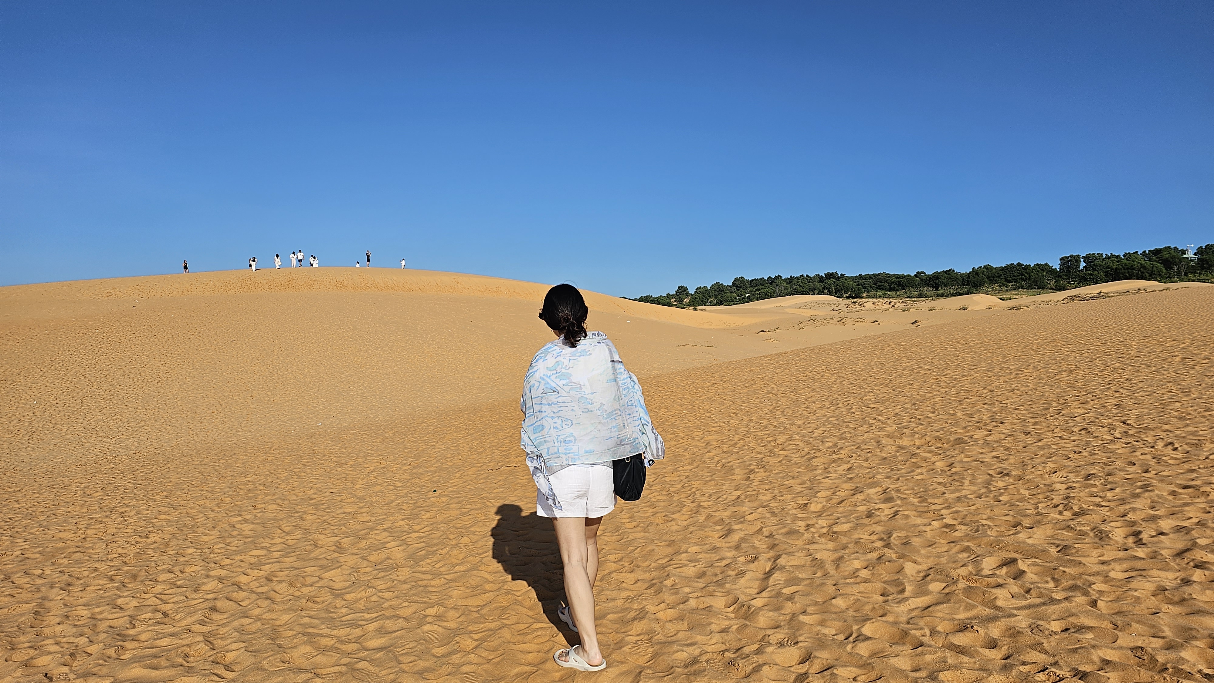 레드샌듄도 모래가 붉은색인데 모래 컬러가 예쁩니다. 다만 화이트 샌듄보다는 규모가 작습니다. 이때는 이미 해가 많이 떠오른 상태라 태양빛이 무척 강하고 더울 때입니다. 모자나 양산이 있으면 좋습니다.